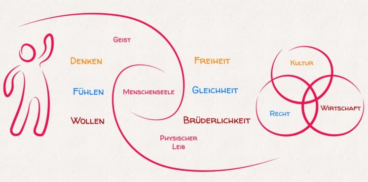 Mit der Dreigliederung des Sozialen Organismus gab Rudolf Steiner Anregungen zur Gestaltung eines gesunden Zusammenlebens, -arbeitens und -lernens von Individuum und Gemeinschaft.